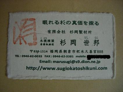私の名刺は杉皮を使った和紙なのですよ、と説明しながらお渡ししたところ・・・