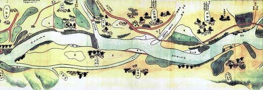 川絵図(星野川との合流点付近、県立柳川古文書館所蔵より部分転写)