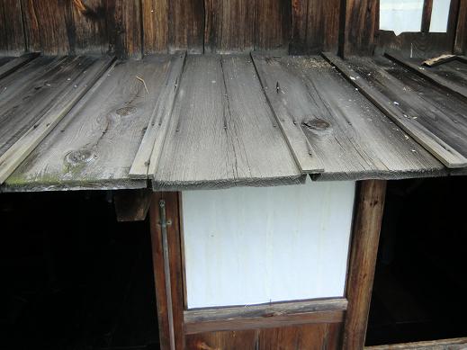 外壁だけでなく、庇(ひさし)にも屋根材として杉板が使われているのです。(↓)
