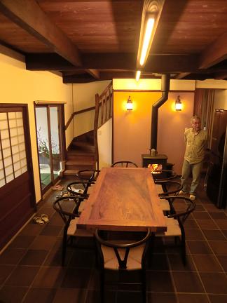 二階。納屋だったころのマツ梁が磨かれ光る。