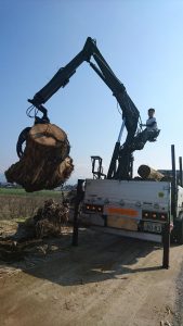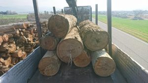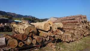 そこで、立っていた木々のみ、うちの土場に運んできました。